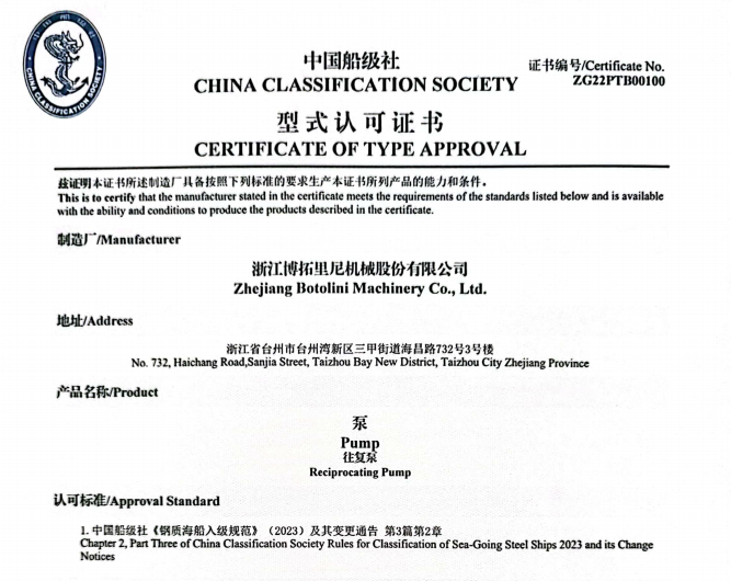 中國(guó)船級(jí)社形式認(rèn)可證書(shū)