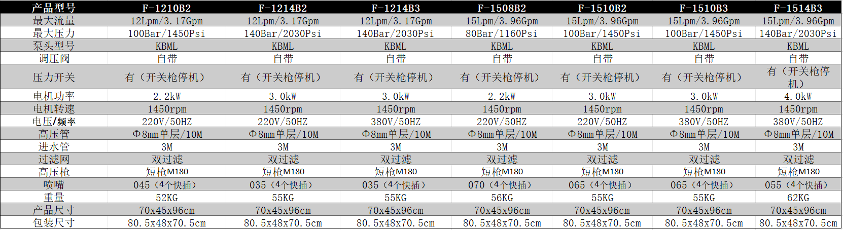 +? 肥肥-F 為商用冷水高壓清洗機,擁有專利外觀證書,新穎大氣。 +? 控制開關可全自動、半自動一體化設計,方便不同人的使用習慣。 +? 機罩采用PP材質,自帶小型儲物槽,經濟實用。 +? 自帶四種角度的噴嘴,分別為:0°、15°、25°、40°,滿足日常不同場景需求。 +? 可選配單相220V或三相380V的四極銅芯感應電機,動力強勁。 +? 采用原廠KBM系列經典高性能水泵,全銅高壓柱塞泵+自帶調壓閥,可調節壓力大小。
