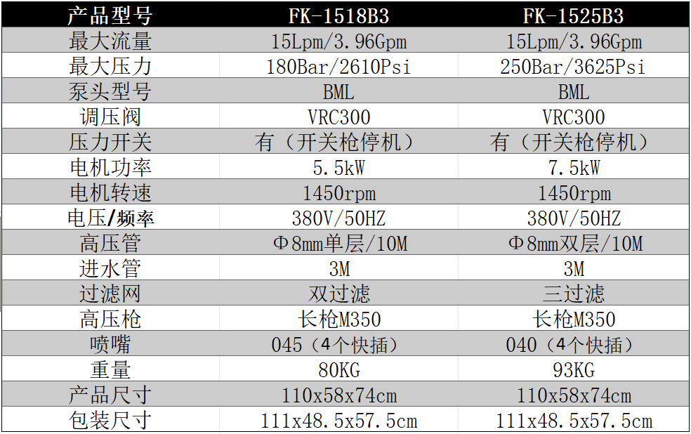 +? 肥肥-FK 為商用冷水高壓清洗機,擁有專利外觀證書,新穎大氣。 +? 控制開關可全自動、半自動一體化設計,方便不同人的使用習慣。 +? 機罩采用鈑金將主體全包圍,可延長設備的使用壽命,自帶小型儲物槽,可放雜物。 +? 自帶四種角度的噴嘴,分別為:0°、15°、25°、40°,滿足日常不同場景需求。 +? 可選配單相220V或三相380V的四極銅芯感應電機,動力強勁。 +? 采用原廠KBM/BM系列經典高性能水泵,全銅高壓柱塞泵+自帶調壓閥,可調節壓力大小。