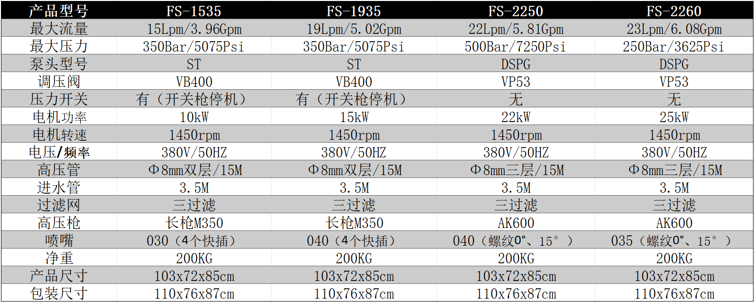 +? 肥肥-FS 為工業(yè)用冷水高壓清洗機,采用電控系統(tǒng),安全高效,方便啟停主機與增壓泵。 +? 整機采用鈑金將主體全包圍,可延長設備的使用壽命。 +? 配備三相380V的四極銅芯感應電機,動力強勁。 +? 采用原廠ST/DS系列經(jīng)典高性能水泵,全銅高壓柱塞泵,壓力高達500bar。