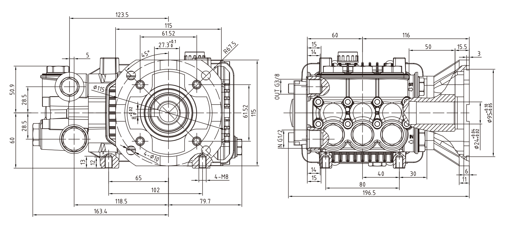 2、壓鑄鋁合金箱體,后蓋帶卸油口。柱塞的運動是通過連桿與曲柄系統實現。高強度合金鋼曲軸,深溝球軸承與滾針軸承搭配,承載力大。