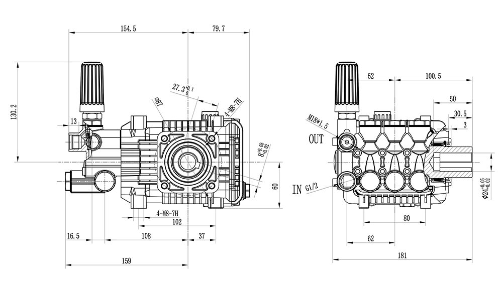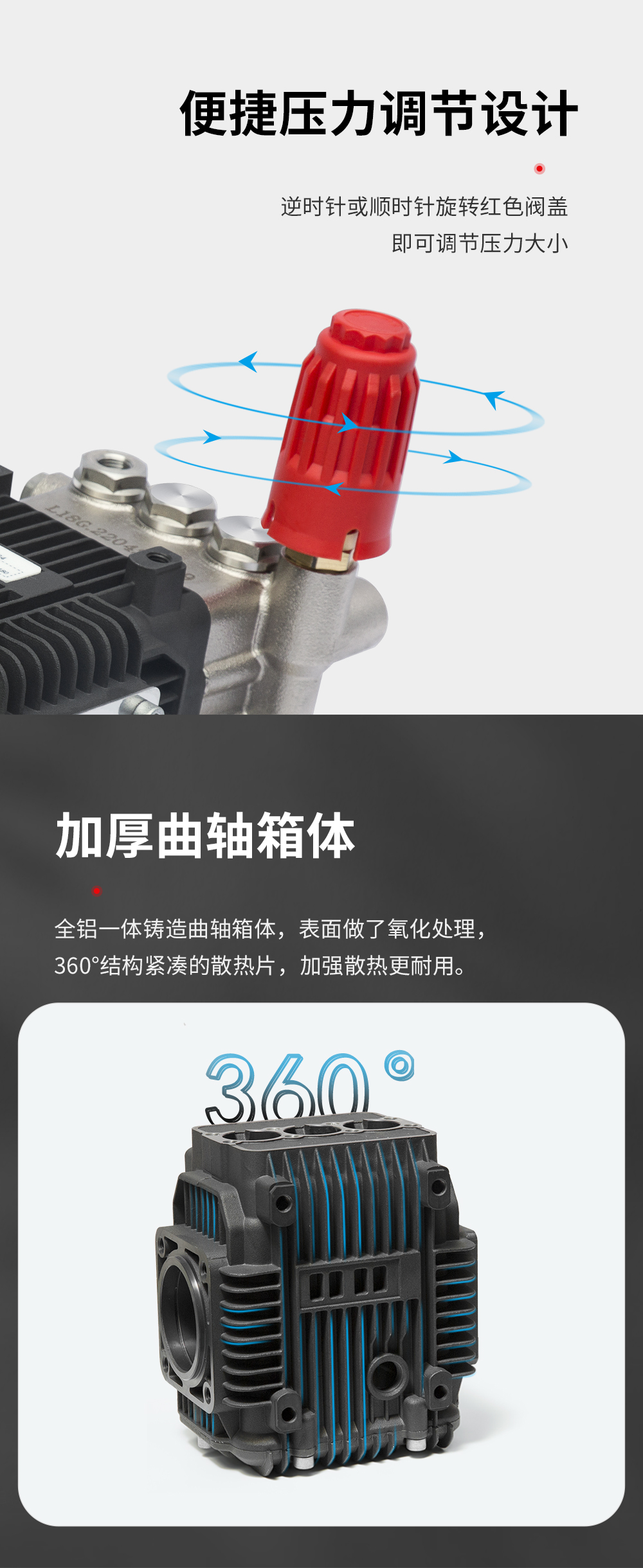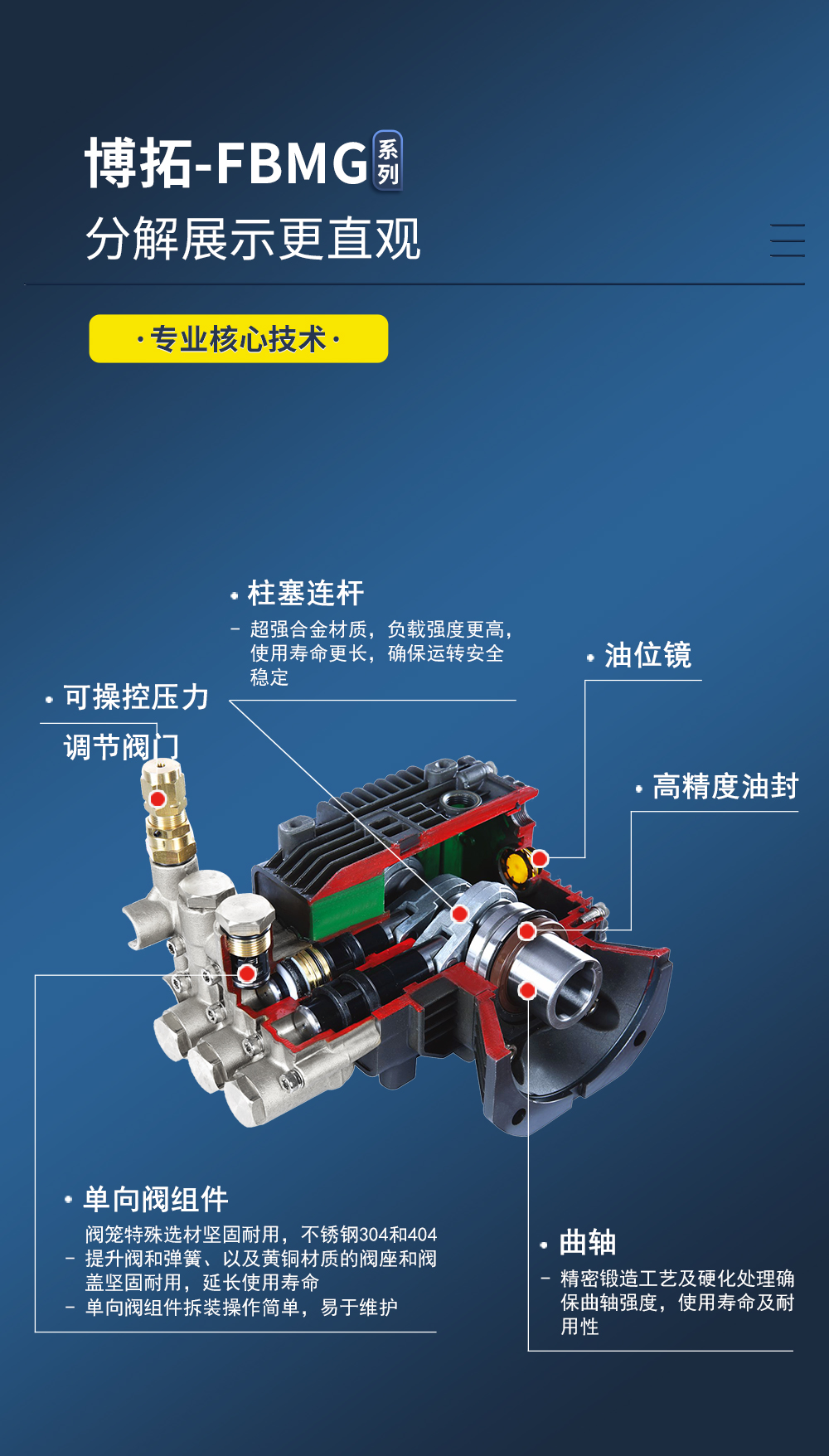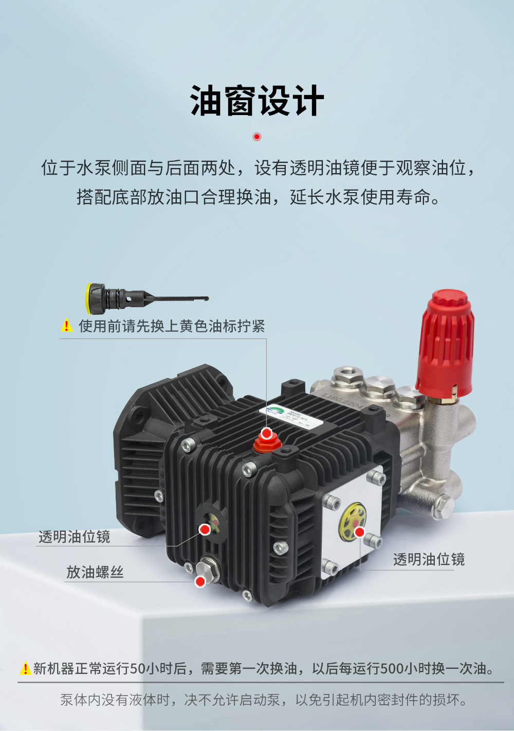 + 壓鑄鋁合金箱體,鑄造泵頭表面電鍍閃亮奪目。噴瓷柱塞,雙道密封系統,自帶調壓閥性價比高。后蓋帶油鏡及卸油口。 特點 2、柱塞的運動是通過連桿與曲柄系統實現。高強度合金鋼曲軸,深溝球軸承與滾針軸承的匹配,保證了動力端運轉的穩定性。 3、進出水單向止回閥保證了液力端運轉高效、穩定。可拆卸單向閥螺栓,便于維護。 4、連體調壓閥、性價比高??梢詫⒉煌郊B接到泵頭。 |