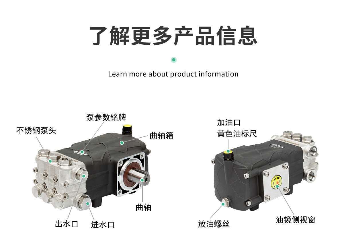 + 壓鑄鋁合金箱體,鑄造泵頭表面電鍍閃亮奪目。陶瓷管精密柱塞,雙道密封系統安全可靠。 特點 2、柱塞的運動是通過連桿與曲柄系統實現。高強度合金鋼曲軸,深溝球軸承與滾針軸承的匹配,保證了動力端運轉的穩定性。 3、進出水單向止回閥保證了液力端運轉高效、穩定。可拆卸單向閥螺栓,便于維護。 4、自帶調壓閥性價比高。無需外接調壓裝置,簡化系統設計,提高穩定性。壓力開關:關槍停機,解放雙手。 5、可以將不同附件連接到泵頭。 |